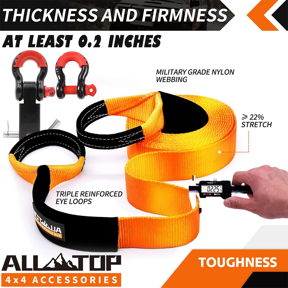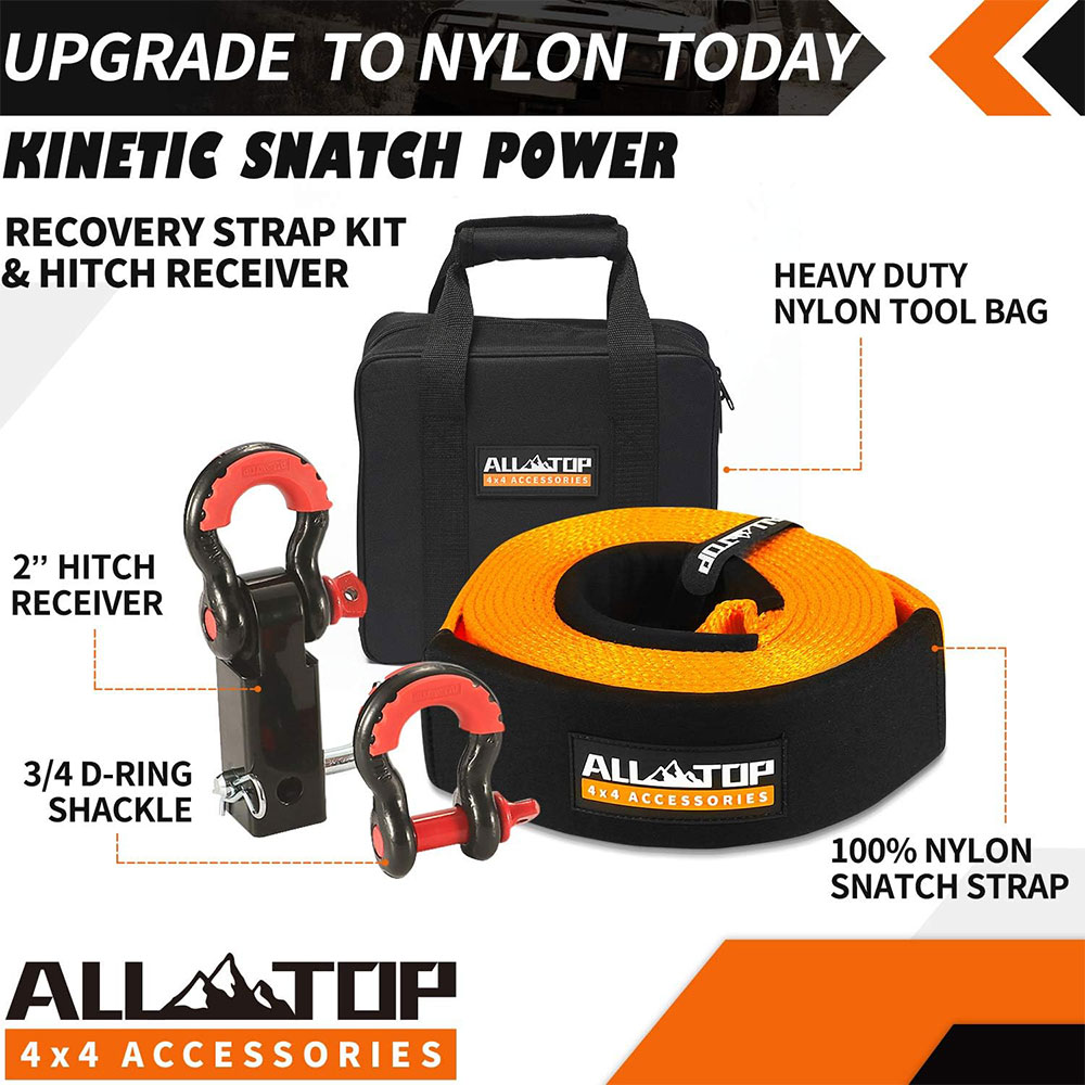 ALL-TOP Nylon Recovery Kit with Hitch Receiver: 3" x 20' (35,000lbs) 100% Nylon Snatch Strap + 2" Shackle Hitch Receiver + 3/4 HD Shackles (2pcs) with Isolator + Storage Bag