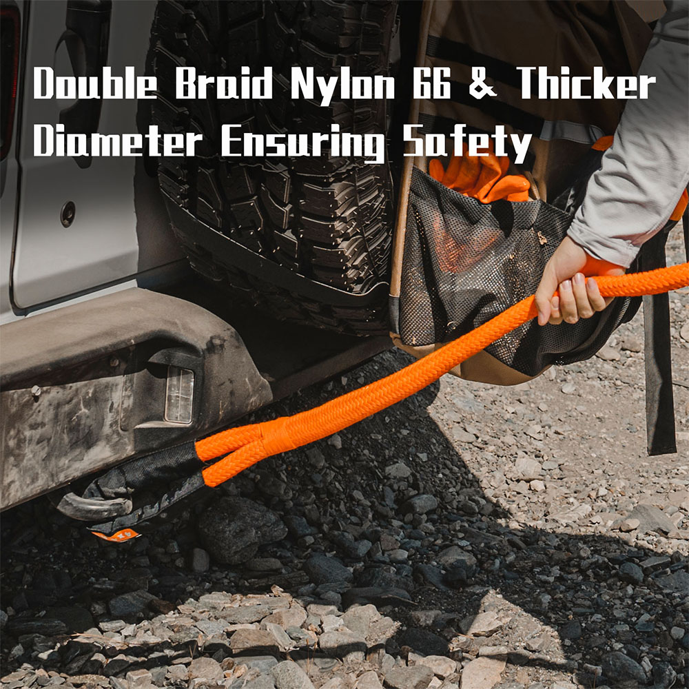 HIGHT-QUALITY ROPE Nylon N66 Recovery Rope, double braid structure, High wear-resistant coating, sand and mud will not get in. Lab Tested and Certified up to 48,000lbs Breaking Strength, more than Capable of any Type of Off-Road Recovery.