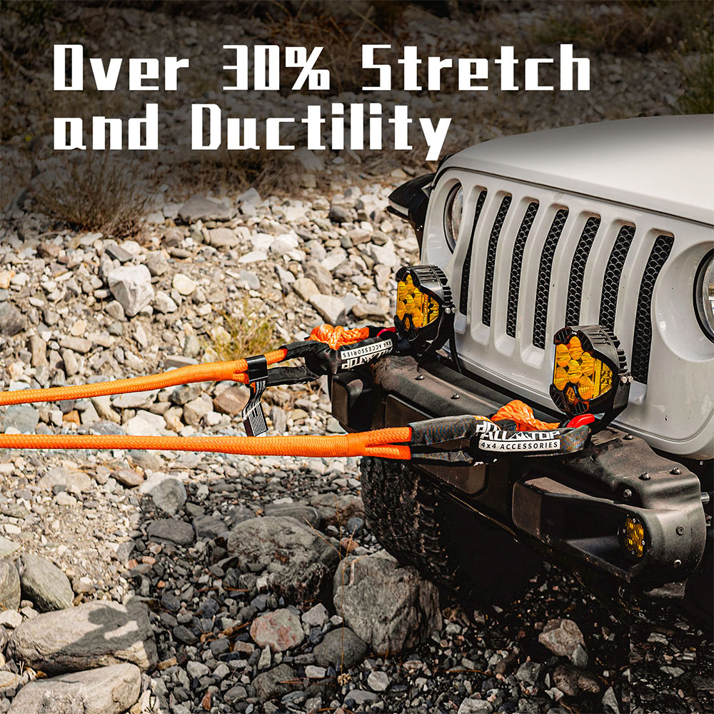 ULTIMATE RECOVERY TOOL Feel the power. This kinetic tow rope has the capability of up to 30% elongation, that’s up to 10% more than a traditional snatch strap.The rope will stretch under load, transferring the kinetic energy from the recovering vehicle to the vehicle in need.
