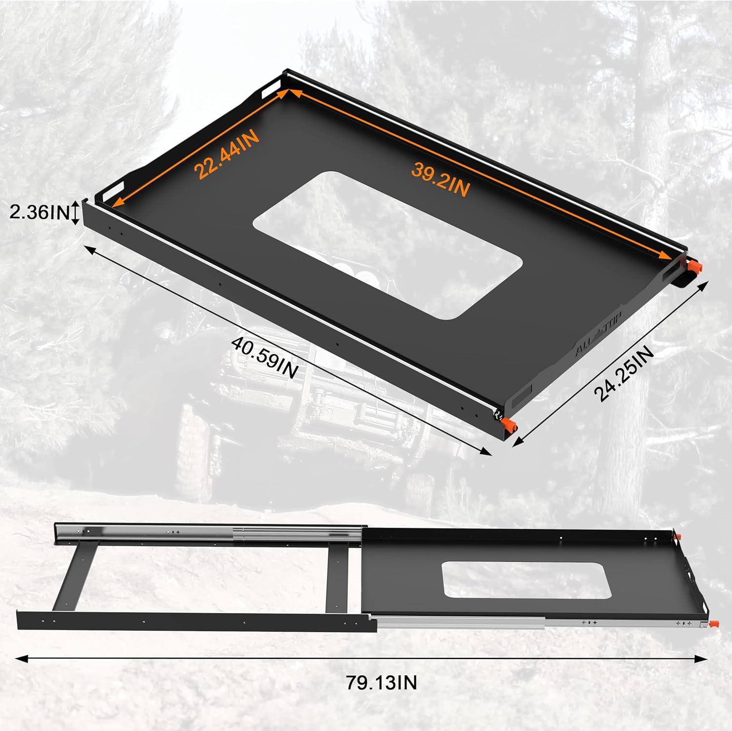 - 【INNOVATIVE】Suits most Portable Vehicle Fridge & Ice Cooler on the market. With ALL-TOP Fridge Slide, you could easily reach your drinks & food from your Fridge and Coolers with its full-extension smooth slides. Two-Hand-Operate Handles are specifically designed for safety.