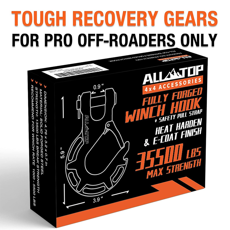 - 【Extreme Winch Hook】 Introducing our Extreme Series Winch hook, made of Ultra-Strong Fully Forged Steel, provides 35500 Lbs Break Strength. With ALL-TOP's exclusive 12-Stage Treating process, these tough Hooks are extremely Impact-Resistant, rust-resistant and have a much longer Wear Cycle against Wear & Abrasion.