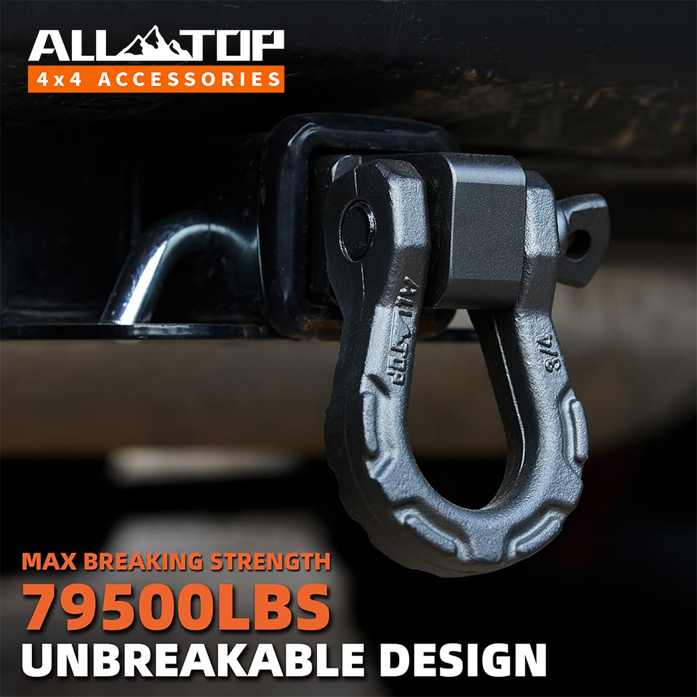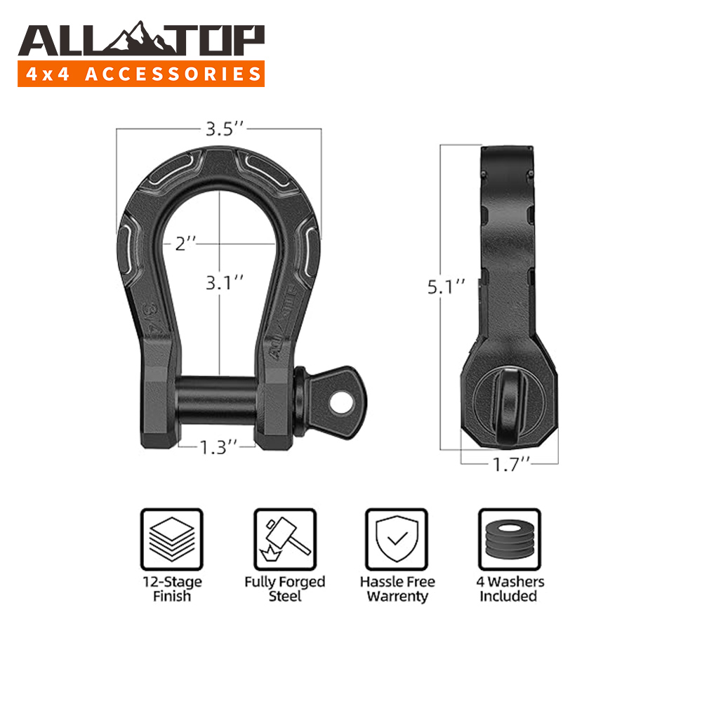【Extreme Series】 Extreme Series D-Ring Shackle, made of Ultra-Strong Fully Forged Steel, provides 79500Lbs Break Strength. With exclusive 12-Stage Treating process, these tough Shackles are extremely Impact-Resistant and Rust-Resistant.