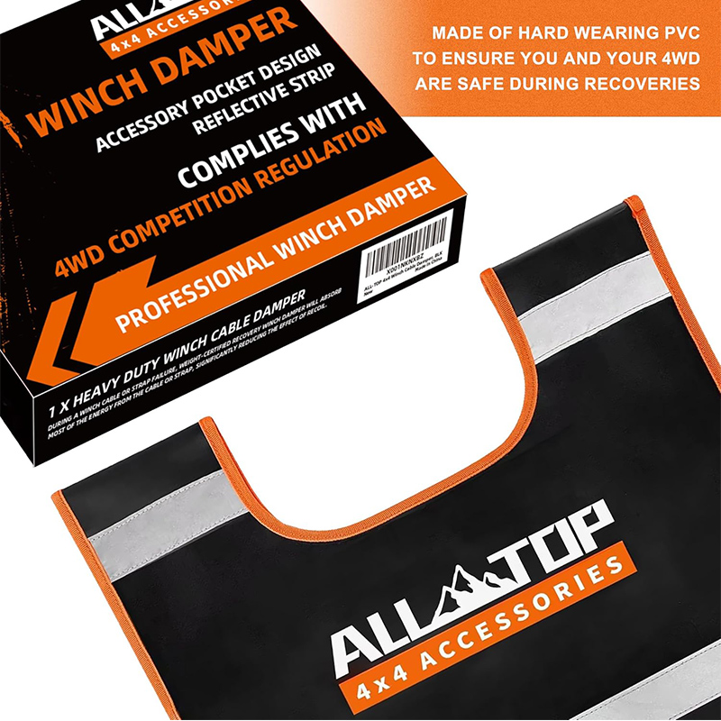 ALL-TOP Winch Damper, Vinyl Winch Cable Damper for Safety Recovery absorb Break Energy when Cable or Rope break - High Visibility Reflective Strip, Black